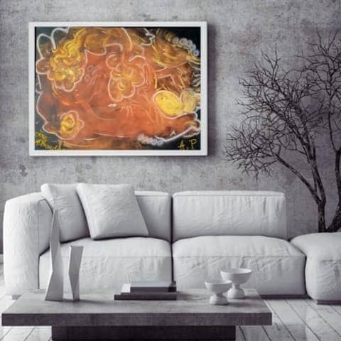 Oeuvre Originale au pigment brut et pastels secs encadrée.