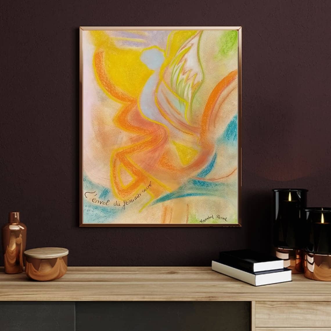 Oeuvre Originale au pigment brut et pastels secs encadrée.